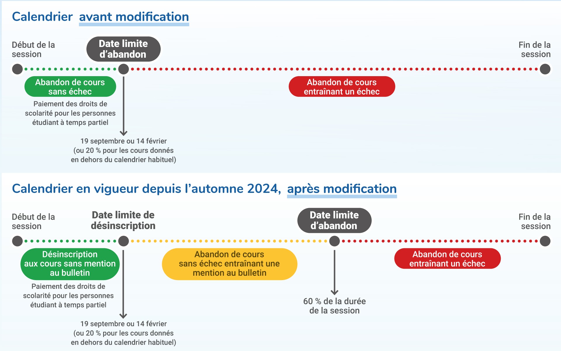 1. La date limite d’abandon sera reportée à 60 % de la durée de la session, dès l’automne 2024.