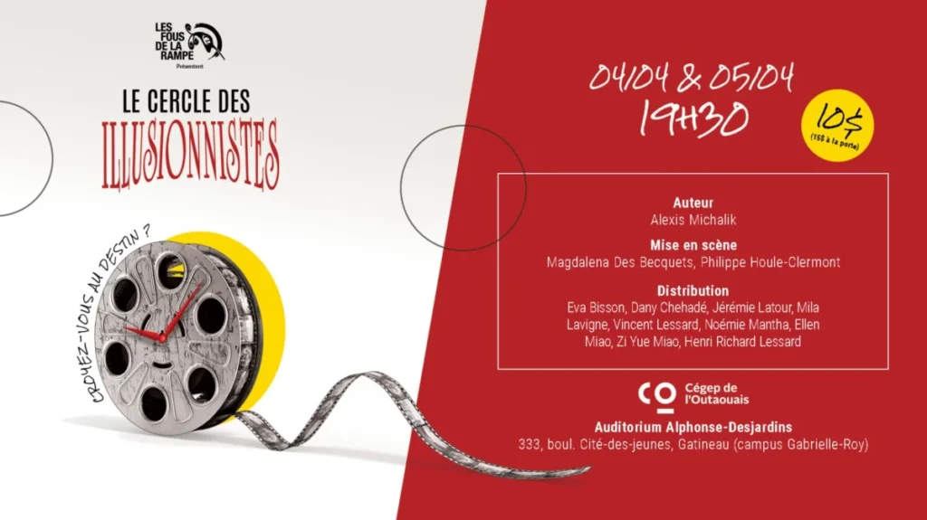 Les 4 et 5 avril derniers, Les Fous de la rampe ont présenté la pièce Le cercle des illusionnistes de l’auteur Alexis Michalik. Une mise en scène de Magdalena Des Becquets et de Philippe Houle-Clermont, tous deux professeurs au Cégep.