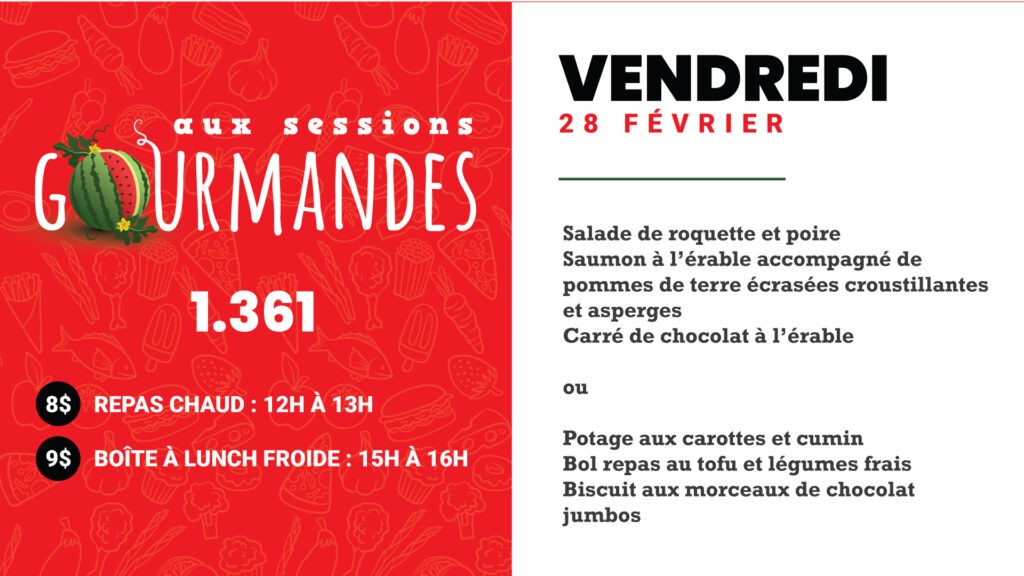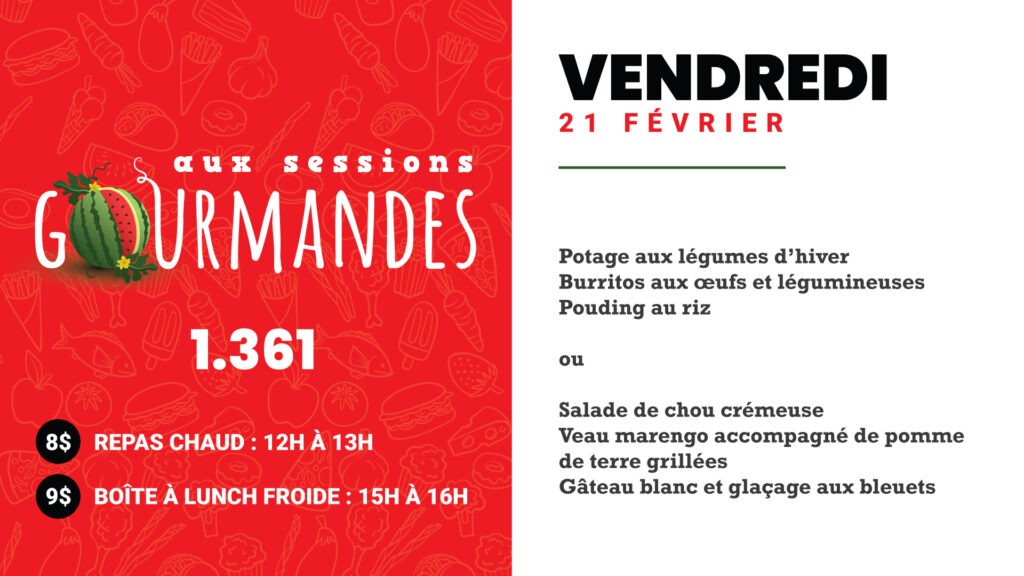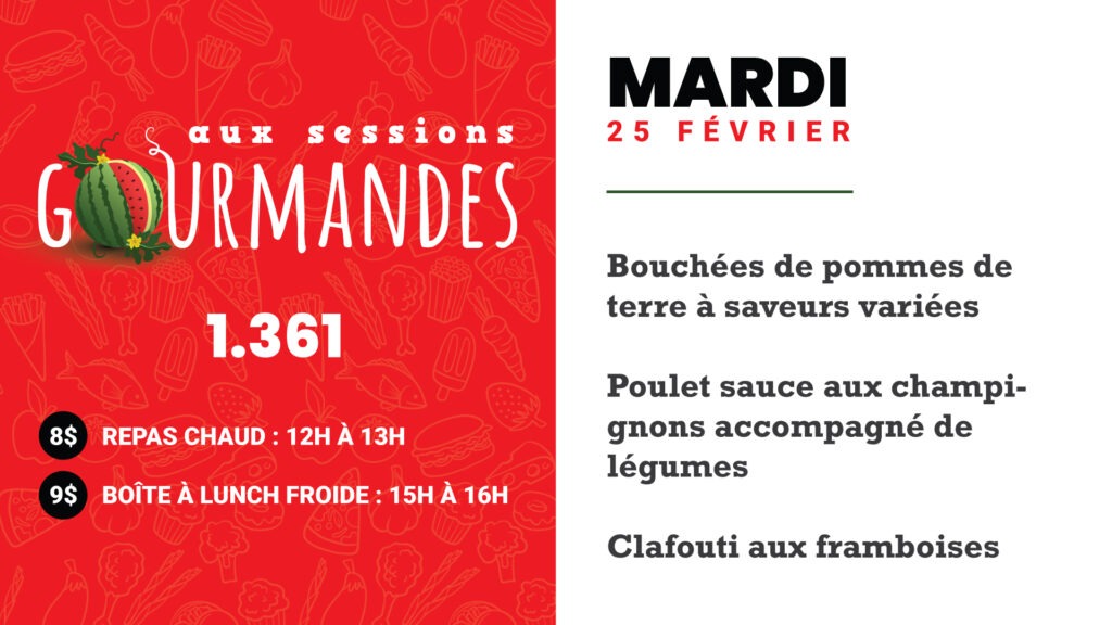 Les repas aux sessions reviennent bientôt! Attention! Les jours ont changé!