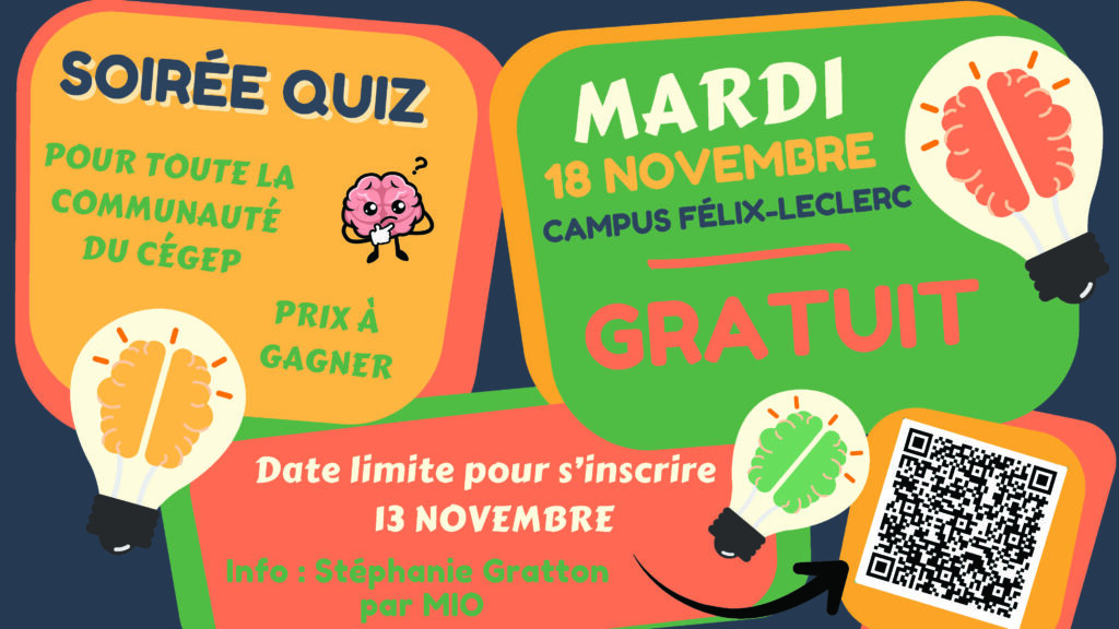 🎉 Dernier rappel pour s’inscrire à la Soirée Quiz – Campus Félix-Leclerc ! 🎉
