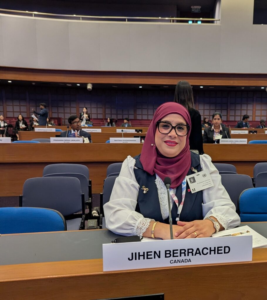 C’est avec grande fierté que nous soulignons la participation de Jihen Berrached, enseignante d’anglais au Cégep de l’Outaouais, qui a été choisie comme seule représentante du Canada après avoir soumis sa candidature l’an dernier. Lors de son allocution, elle a mis de l’avant le rôle central de l’éducation comme moteur de changement en matière de développement durable. Elle a également parlé du Cégep de l’Outaouais, mettant en lumière notre inclusivité et notre capacité à valoriser la richesse de notre diversité.