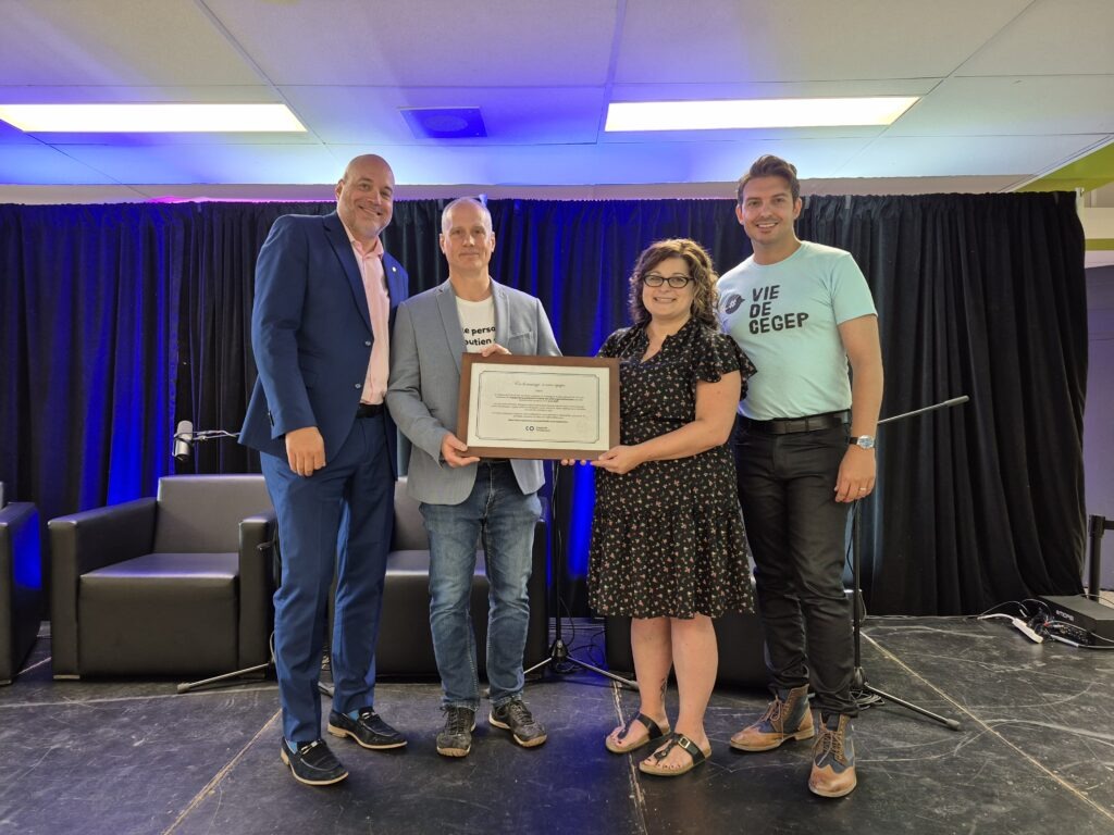 Un panel inspirant, composé de quatre membres du personnel, a aussi pris la parole pour partager leur parcours au Cégep, d’abord comme étudiante et étudiant, puis comme membre du personnel. Ce moment a mis en lumière la richesse des trajectoires individuelles au sein de notre établissement.