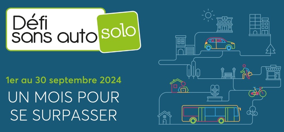 Du 1er au 30 septembre, joignez-vous à l’équipe pour le Défi sans auto solo et explorez des façons plus durables de vous déplacer : marche, vélo, autobus, covoiturage… Chaque petit geste compte !